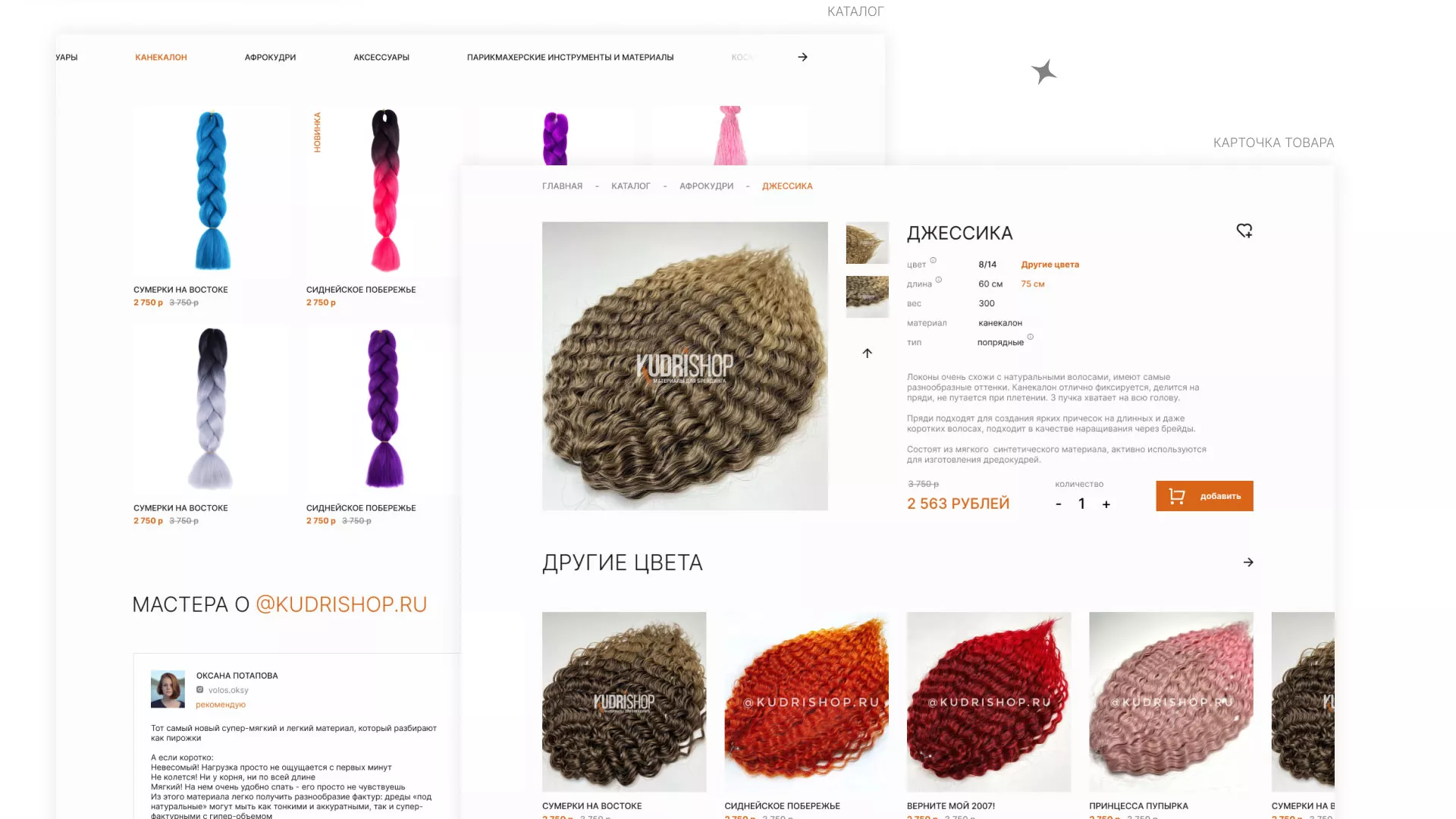 Создание интернет-магазина по продаже афрокудрей и других материалов для брендинга в Красном Сулине. Целевая аудитория — молодые и современные девушки, желающие разнообразить свой образ.